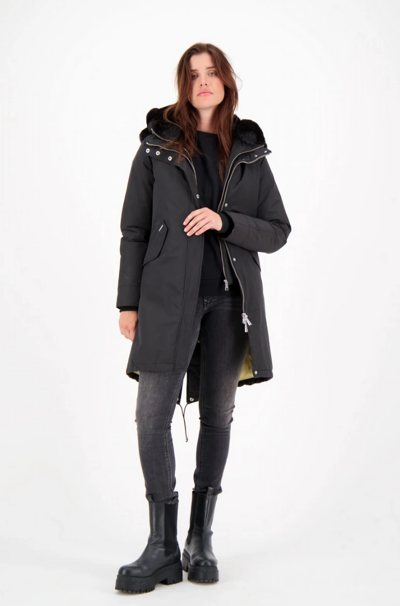 De Airforce double zip Fishtail parka jas is een langer model dames jas voor dagelijks gebruik. Het model is vernoemd naar de langere achterkant van de jas, welke zorgt voor extra comfort tijdens de koude dagen. De Double Zip Fishtail Parka heeft een langere achterkant, deze kan je doormiddel van drukknopen omslaan en recht maken. De Fishtail parka heeft 2 steekzakken met klep en een vaste capuchon. De jas heeft twee ritsen en een capuchon die gevuld is met faux fur, dit is bevestigd met knopen en kan eruit gehaald worden. De jas heeft twee steekzakken en in de manchetten bevinden zich duim gaten, dit zorgt voor extra comfort tijdens de koudere dagen. De parka is gemaakt in onze classic stof.