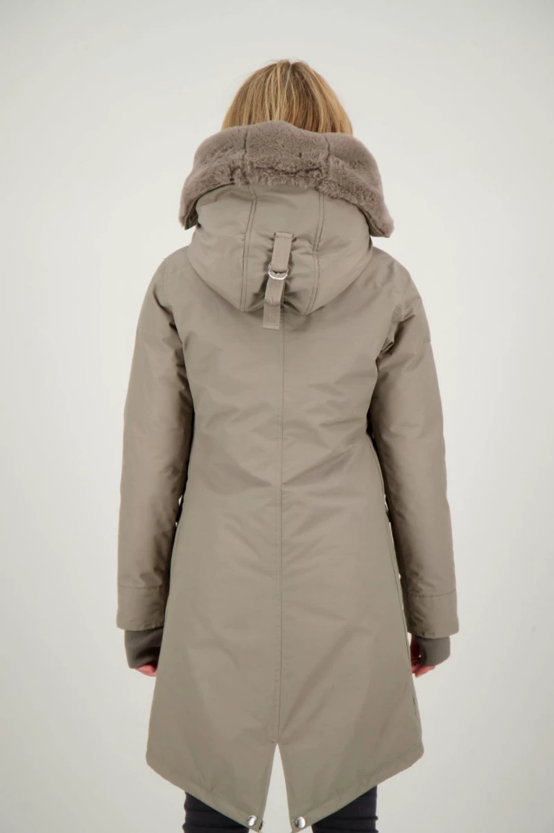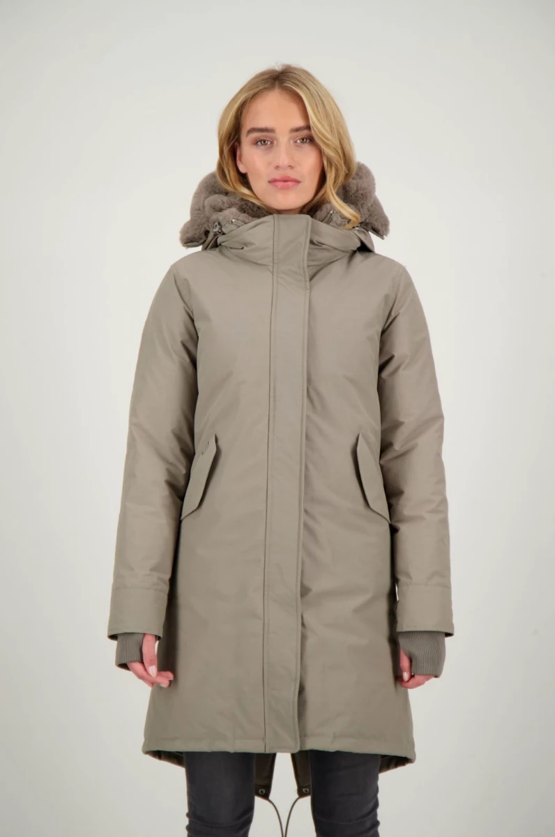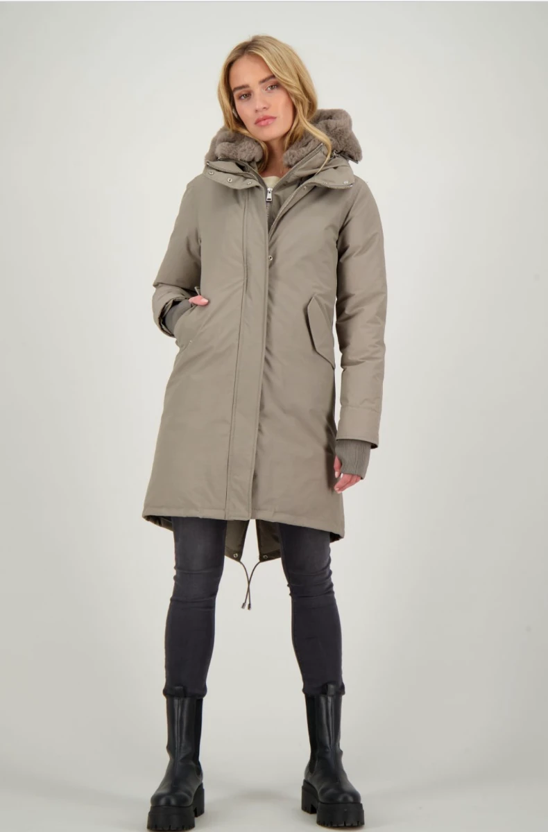 De Airforce double zip Fishtail parka jas is een langer model dames jas voor dagelijks gebruik. Het model is vernoemd naar de langere achterkant van de jas, welke zorgt voor extra comfort tijdens de koude dagen. De Double Zip Fishtail Parka heeft een langere achterkant, deze kan je doormiddel van drukknopen omslaan en recht maken. De Fishtail parka heeft 2 steekzakken met klep en een vaste capuchon. De jas heeft twee ritsen en een capuchon die gevuld is met faux fur, dit is bevestigd met knopen en kan eruit gehaald worden. De jas heeft twee steekzakken en in de manchetten bevinden zich duim gaten, dit zorgt voor extra comfort tijdens de koudere dagen. De parka is gemaakt in onze classic stof.