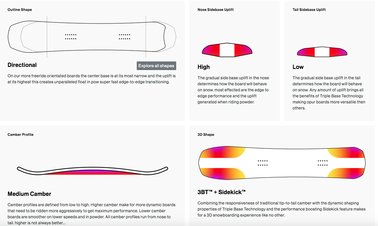 De Cruiser is een nieuwe shape voor het komende seizoen. Hij is super stabiel bij hoge snelheden, maar toch speels en leuk voor all mountain cruisen of een rondje door het park. Hij kan worden gereden in traditionele lengtes of iets langer door zijn lange neus ten opzichte van de effectieve edge. We hebben dit board ontworpen met freestyle carving in gedachten, dus ga naar het skigebied en doe raar.