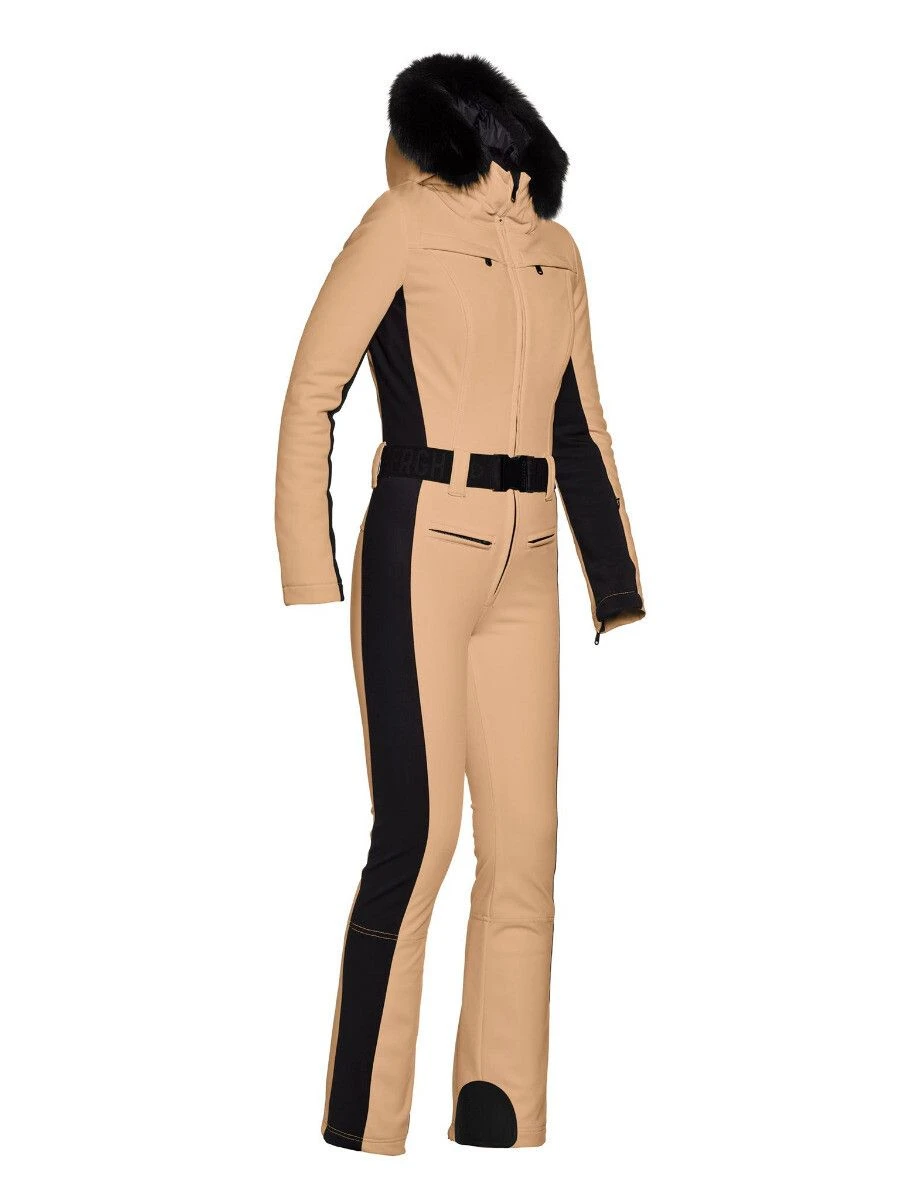 De Goldbergh parry is een Softshell skipak met capuchon, boord van imitatiebont. De parry is voorzien van 4 zakken met rits, 2 binnenzakken met rits en een vakje voor de skipas. De parry heeft een Imitatielederen sterapplicatie op vaste capuchon.