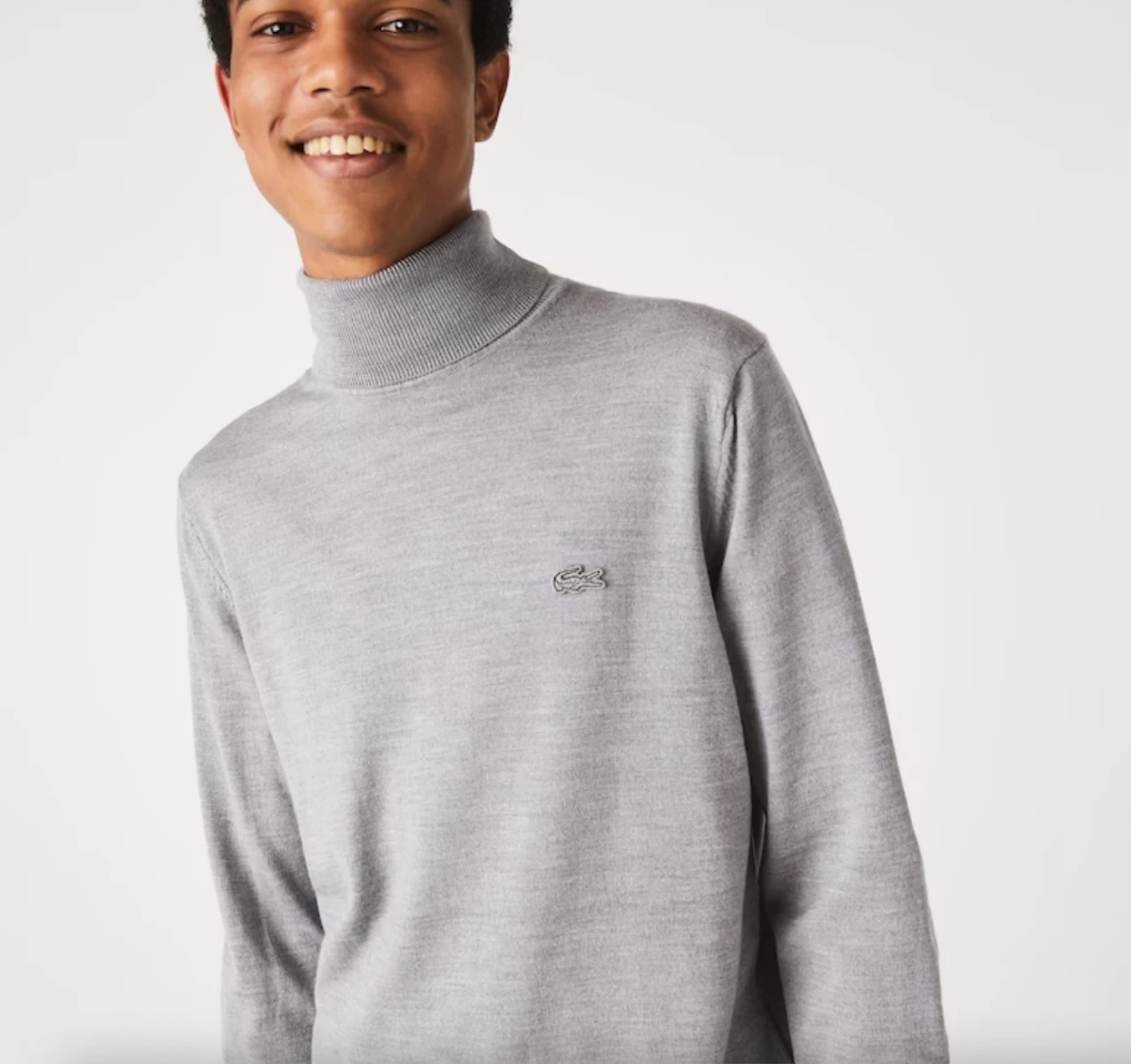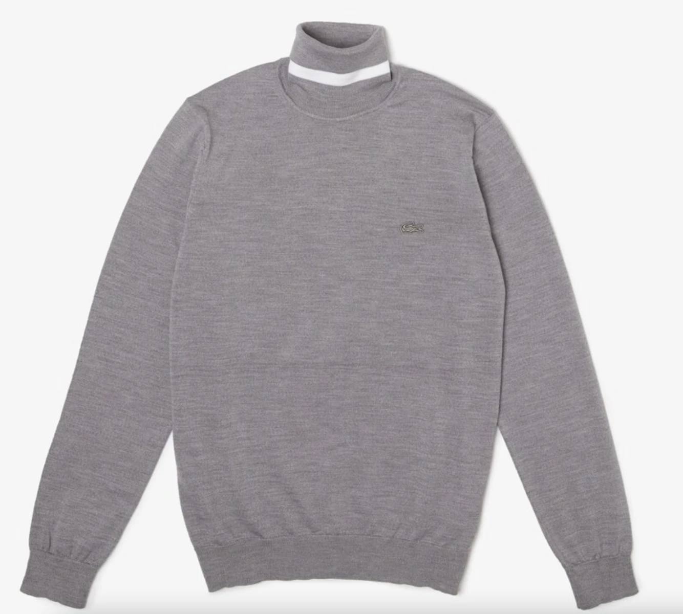 Deze mooie coltrui van Lacoste heeft een geribbelde afwerkingen onderaan van de trui, die teen mooie gestroomlijnde uiterlijk heeft. Hij is warm en elegant in ieder seizoen, en een kleine kleur-op-kleur krokodil op de borst maakt hem af op de meest stijlvolle manier.