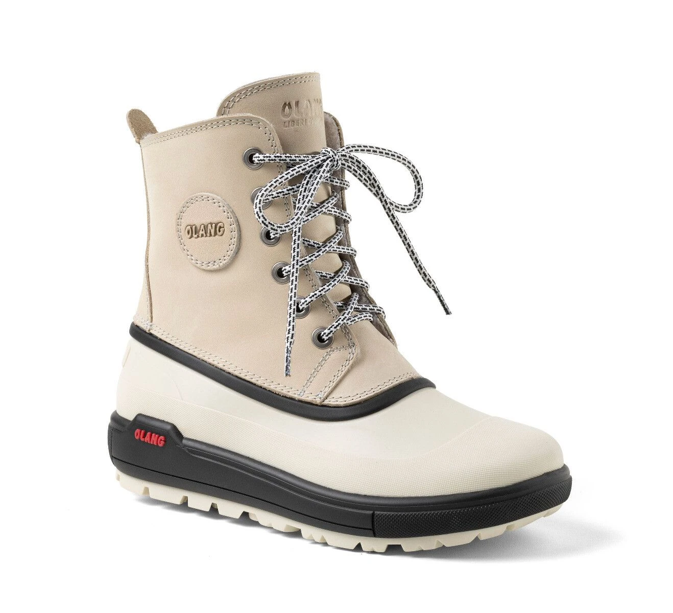 De Olang Calgary is een nieuw model snowboot met een spike systeem dat inklapbaar is. De Calgary is een snowboot met een halfhoge schacht. De laars is vervaardigd van geolied leer en heeft een vintage uitstraling. De eco Shearling-voering is warm, functioneel en absoluut toonaangevend op het gebied van design. De upper is vastgelijmd aan de anti-slipzool om optimale thermische isolatie te bereiken, zonder de bewegingsvrijheid te verminderen. De Calgary heeft een OC-systeem, dit antislip-systeem bestaat uit twee beugels die in de zool zijn verwerkt. De beugels worden ‘omgeklapt’ bij gladde weersomstandigheden. Er verschijnen kleine spikes die zorgen voor goede grip bij gladde ondergronden. De beugels kunnen daarna weer “teruggeklapt” worden, zodat de spikes verdwijnen.