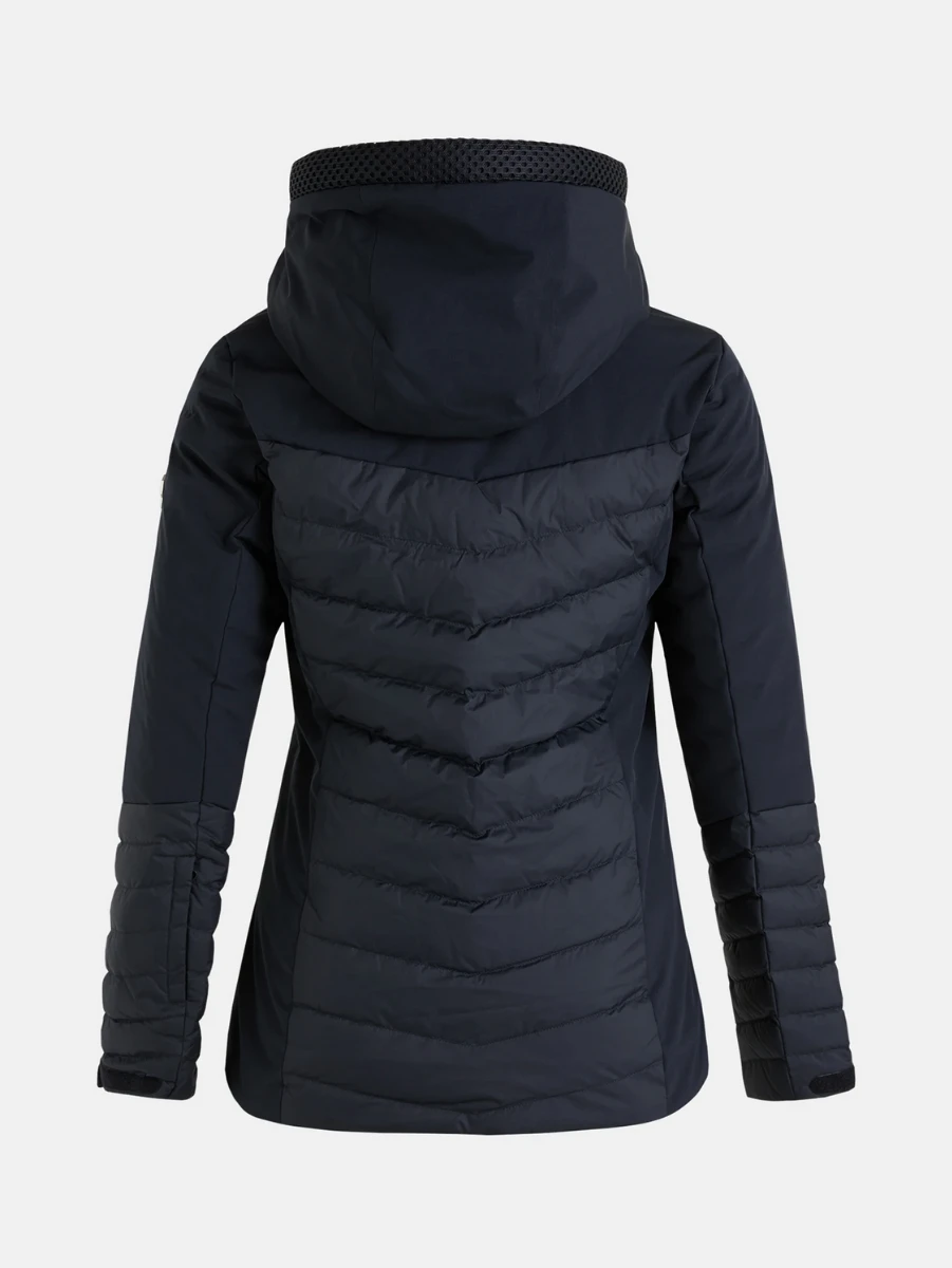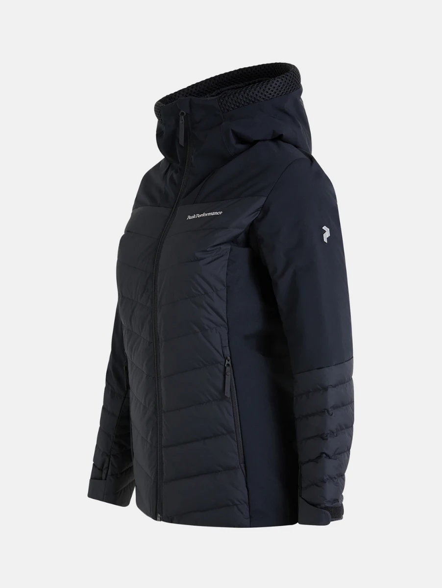De Peak Performance Blackfire down jacket is een ski-jas is zowel geschikt voor de piste als in de stad en is gesneden voor een lang, getailleerd silhouet. Gemaakt van weerbestendige 2-laags Hipe® stof en geïsoleerd met een mix van dons en synthetische vezels om je warm en droog te houden. Voorzien van een reeks slimme details zoals zakken met rits, sneeuwvangers en een capuchon die geschikt is voor helmen. Het gebruikte gerecyclede polyester is vrij van PFC waardoor dit een duurzame keuze is