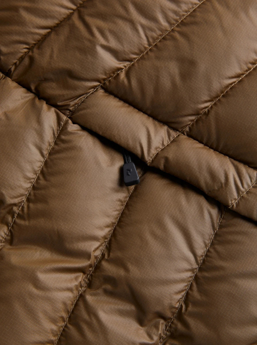 De Frost Down hooded van Peak Performance is een lichtgewicht, duurzaam en gewatteerde jas. Veelzijdig in gebruik, dankzij het eenden dons en het gerecycled polyester materiaal. De jas is zo te dragen of in koudere weersomstandigheden onder een buitenste laag.