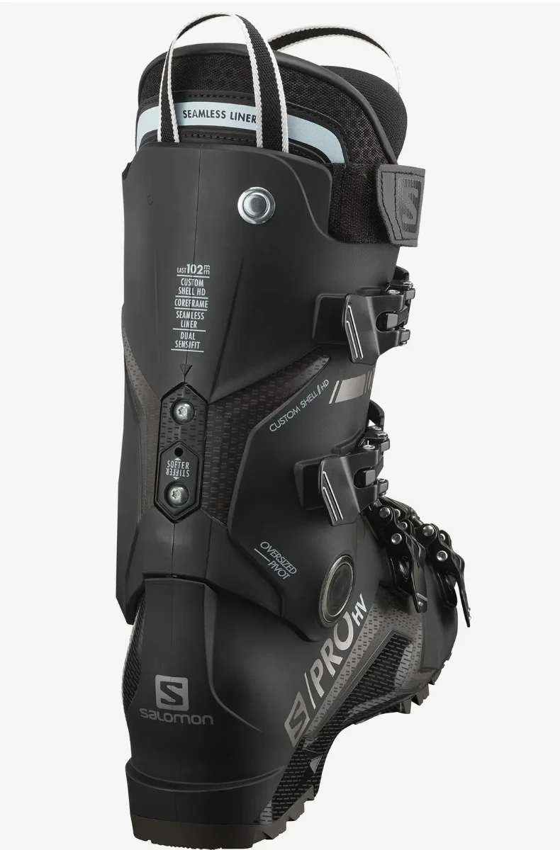 De Salomon S Pro 100 HV is een breder model skischoen voor heren . De stijvere flex van 100 biedt een goede krachtoverbrenging. Dankzij de naar de voet te vormen My Custom Fit 3D Performance binnenschoen en de vervormbare Custom Shell buitenschaal kan de pasvorm optimaal naar de voet gevormd worden. Dit geeft een maximale fixatie van de voet zonder in te leveren op comfort. HV staat voor high volume skischoenen. Dit Hv is een bredere variant dan het basis model.