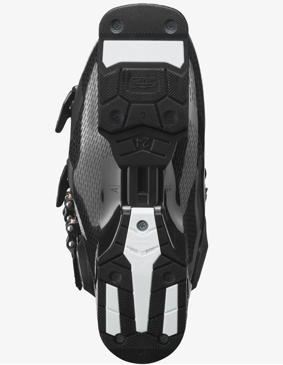 De Salomon S Pro 90 HV W is een sportieve skischoen voor dames. De stijvere flex van 90 biedt een goede krachtoverbrenging. HV staat voor High volume en heeft een bredere dames pasvorm. Dankzij de naar de voet te vormen My Custom Fit 3D Performance binnenschoen en de vervormbare Custom Shell buitenschaal kan de pasvorm optimaal naar de voet gevormd worden. Dit geeft een maximale fixatie van de voet zonder in te leveren op comfort. HV staat voor high volume skischoenen. Dit Hv is een bredere variant dan het basis model.De skischoenen zijn voorzien van gripwalk zooltjes voor meer grip tijdens een korte wandeling.